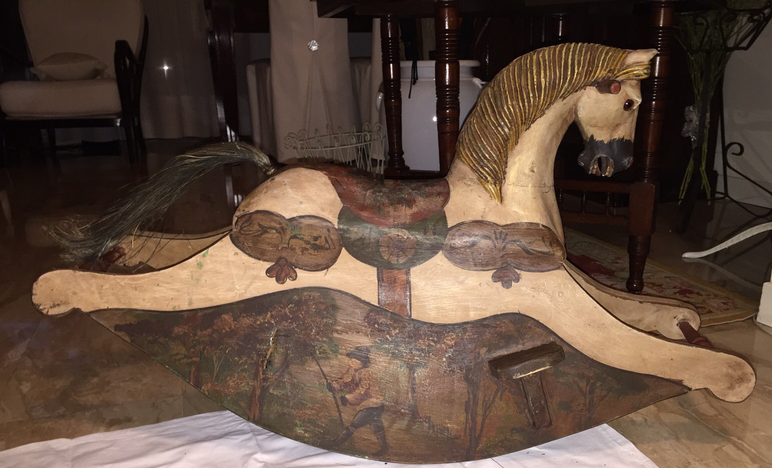 - Cavallo a dondolo inizi 900 in legno finemente decorato, coda in crine, condizioni perfette. Provenienza Tirolo.