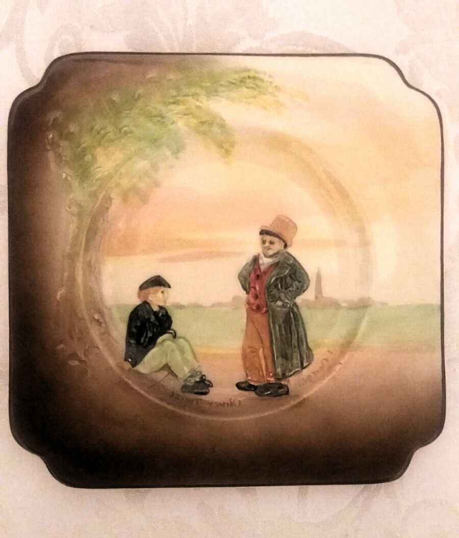 Piattino inglese ceramica Royal Dulton con disegno a rilievo, raffigura un momento tratto dal racconto " Oliver Twist ".*